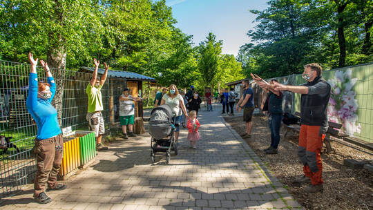 Pforzheim. Als der große Moment näher rückt an diesem sonnigen Mittwochmorgen, ist die allgemeine Anspannung förmlich greifbar. „Wir freuen uns tierisch auf die Wiedereröffnung“, sagt Wildpark-Chef Carsten Schwarz, räumt aber ein: „Wir sind wahnsinnig aufgeregt, weil das ja ein ganz neues Land ist, dass wir hier nun erobern. Wir mussten den Betrieb komplett umkrempeln.“ Als dann um Punkt 10 Uhr die ersten Besucher die Kontrolle am neu geschaffenen Zugangsbereich passieren, stehen Schwarz und sein Team Spalier: Eine La-Ola-Welle schwappt den Gästen entgegen.