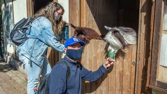 In einem rundherum herausgeputzten Park treffen die Besucher auf Hagenschieß-Bewohner, die besonders neugierig und auch gleich wieder zutraulich sind. Mensch und Tier haben sich ganz offensichtlich vermisst: kein Wunder nach dieser 72 Tage währenden Zwangspause wegen Corona.