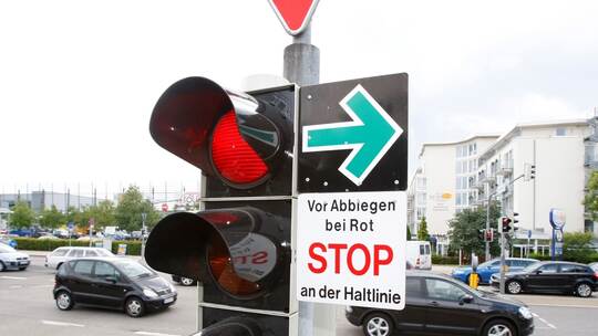 Es ermöglicht Rechtsabbiegern grundsätzlich auch dann abzubiegen, wenn die Ampel rot ist. Einfach losfahren geht aber nicht. Stattdessen muss man an der Haltelinie halten, und nach kommendem Verkehr sowie querenden Fußgängern schauen. Kommt nichts, dann darf gefahren werden. Daher „Stobbe, gugge, fahre“.
