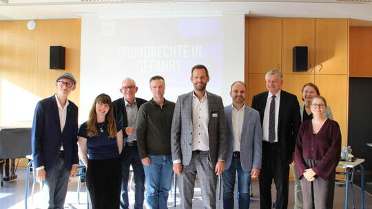 Auf dem Podium nahmen Politiker unterschiedlicher Parteien Platz: Simon Schwarz (Bündnis 90/DieGrünen), Kai Adam (SPD), Bastian Rosenau (parteilos), Hans-Ulrich Rülke (FDP), sowie Andreas Renner (CDU). Mika Schubert und Anna Gaiser vom Gemeinschaftskunde-LK moderierten die Diskussion. Im Mittelpunkt stand die Frage, ob und inwiefern die Grundrechte in Deutschland aktuell unter Druck stehen. Die Teilnehmenden beleuchteten unterschiedliche Perspektiven – von der Bedeutung der Meinungsfreiheit über den Umgang mit Extremismus bis zu Fragen zur Demokratievermittlung.