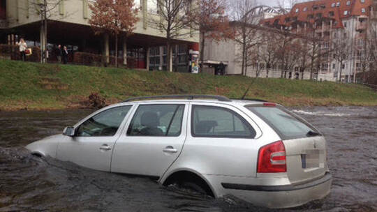 Zu Schaden kam dabei niemand. Der 79-jährige Autobesitzer parkte sein Fahrzeug wenige Minuten zuvor auf einem Parkplatz und begab sich zum Parkscheinautomaten, um ein Ticket zu lösen. Als er zurückkam, war sein Auto weg. Er hatte offenbar vergessen die Handbremse anzuziehen und auch ein Gang war nicht eingelegt. Sein Auto musste mit einem Autokran aus dem Wasser gezogen werden. Der Sachschaden beläuft sich auf etwa 5.000 Euro.