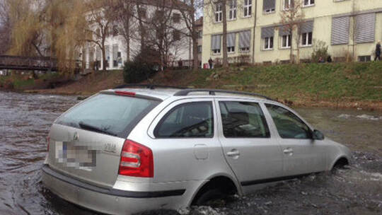 Pforzheim. Das wünscht sich kein Autobesitzer: Mal eben schnell geparkt, zurückgekommen und das Auto ist weg. Geklaut? Abgeschleppt? Im Falle eines Skoda-Fahrers, der am Dienstagvormittag sein Fahrzeug nicht mehr am ursprünglichen Abstellort vorfand, hatte sich das Auto selbstständig umgeparkt - und zwar mitten in die Enz beim Hebel-Gymnasium.
