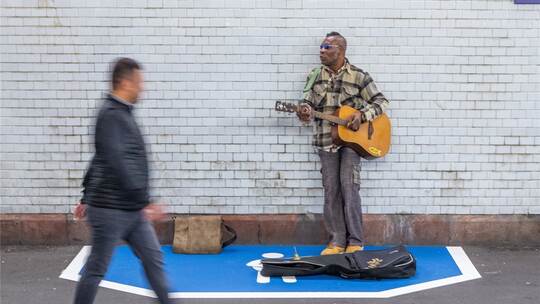 Pforzheim. Fußgänger, Radfahrer, Taxis und Busse – sie alle haben ihre eigenen Schilder und Markierungen im Straßenraum. Musiker bekommen ihren Platz dagegen eher selten optisch zugewiesen – bis jetzt. Denn seit Mittwochvormittag zeigt ein blauer Halbkreis in der westlichen Bahnunterführung genau an, wo hier die Musik spielt. Deutlich macht das auch ein bis dato in Pforzheim nicht genutztes Piktogram: Und zwar das einer gitarrespielenden Person.