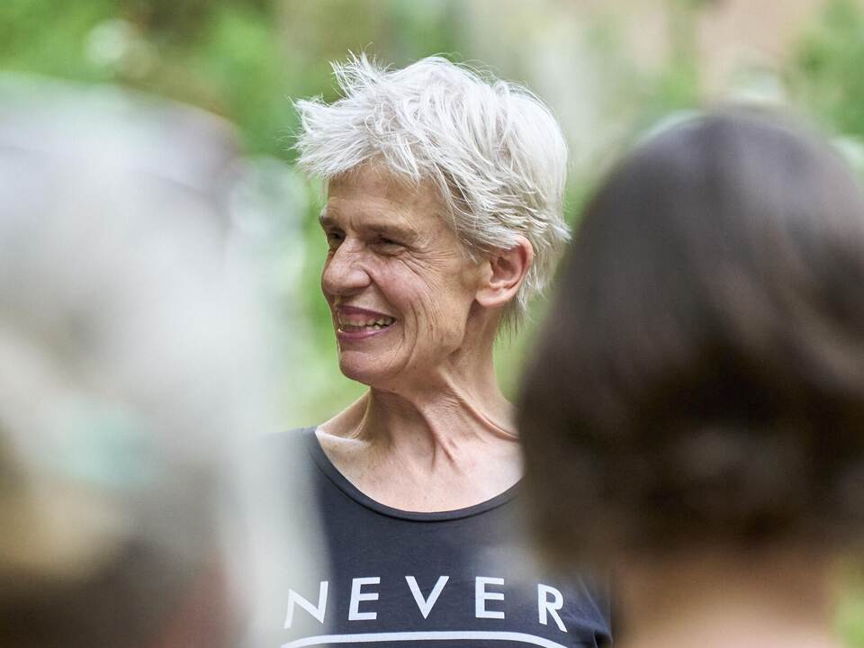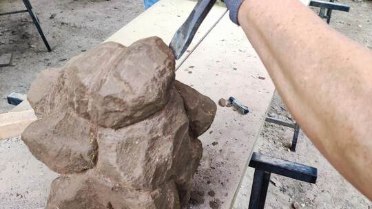 Oft kommen die Menschen mit einer vagen Idee zu Burrer. Konkret wird es erst, wenn sie die Felsbrocken vor sich ausbreitet, von denen sich jeder einen Stein zur Bearbeitung aussuchen kann. Eine Teilnehmerin sagte einmal: „Dieser Stein sieht aus wie ein Butt. Er wird mich daran erinnern, dass ich nicht über andere urteilen soll – wie im Märchen vom Fischer und seiner Frau.“ Eine andere Teilnehmerin war überzeugt, nicht geschickt genug zu sein, um ihre Idee einer filigranen menschlichen Gestalt umzusetzen. Burrer bat sie, die Skizze als professionelle Auftragsarbeit anzulegen. Diese vereinfachte sie, gab Anleitung – und die Teilnehmerin ging schließlich begeistert mit ihrer eigenen Skulptur nach Hause. Wer nicht genau weiß, wie man aus einem Gedanken eine Skulptur formt, für den spielt Burrer zu Beginn des Workshops kreatives Ping-Pong: „Jemand sagt zum Beispiel: Meine Oma hat mir immer über die Hand gestrichen. Ich frage dann: Wie können wir das Streicheln in den Felsbrocken bringen?