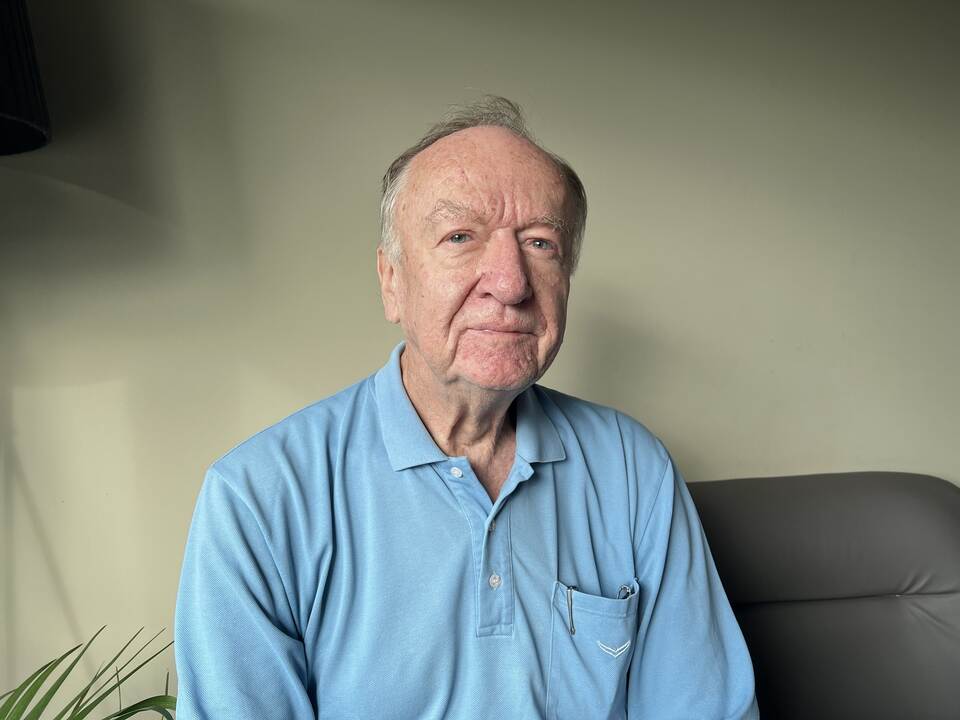 Walter Lauerbach (81) aus Ispringen ist geboren in Wien und hat lange in Pforzheim gelebt. Von ihm stammt eine historische Aufnahme der Sprengung des Stadtkirchenturms im Film. Falk