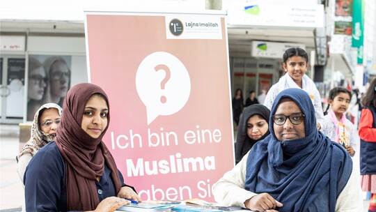 „Wir sind ein Teil Deutschlands“ sagt die Pädagogin, „und wir wollen uns nicht diskriminieren oder in eine Ecke drängen lassen“, sagt Abdullah, die am Samstag mit einigen anderen Mädchen und Frauen an einem Stand auf dem Marktplatz mit Passanten ins Gespräch kommen wollen. „Ich bin eine Muslima. Haben Sie Fragen?“, steht auf einem großen Banner. Doch das Interesse an dem Kommunikationsangebot ist zurückhaltend und scheint die Vorurteile und Vorbehalte zu bestätigen.
