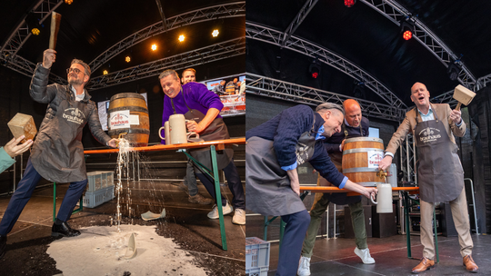 Und dieses Jahr? Am Donnerstag ist die nächste Brötzinger Party eröffnet worden, das Frühlingsfest. Natürlich wieder mit Bierfass. Gefehlt hat diesmal aber Peter Boch. Stattdessen schickte er seinen Ersten Bürgermeister Dirk Büscher. Der dachte sich wohl: "Challenge accepted, Chef!", denn mit einem sicheren Hieb war der Fassanstich erledigt und das Bier sprudelte. Die ganze Szene gibt's hier im Video: