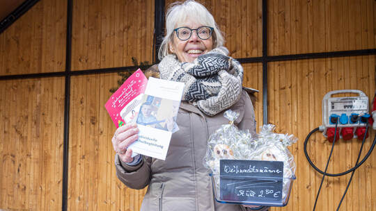 Unter anderem Susanne Scherghuber präsentierte Selbstgemachtes und informierte über die Arbeit der gemeinnützigen Einrichtung, die die soziale und berufliche Teilhabe für Menschen in der Region fördert. Mehr dazu findet sich im Internet auf www.miteinanderleben.de. An diesem Freitag, 9. Dezember, gehört diese Bürgerplattform auf dem Marktplatz der Deutsch-Französischen Gesellschaft.