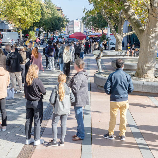 Erneut nutzten viele Menschen das Angebot. Obwohl die Schlange bis in die Bahnhofstraße reichte und mit einer Wartezeit von zwei langen Stunden gerechnet werden musste, herrschte in der herbstlichen Mittagswärme eine gelassene Stimmung unter den Wartenden. Dabei schadete es den Gemütern nicht, dass die Sonne sich ab und zu mal zeigte.