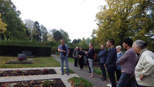 Unter der Leitung von Tatjana Bem und Manuel Sauter von der Ortsverwaltung Eutingen sowie Daniel Gerstner vom Bestattungsinstitut Gerstner fand an diesem strahlenden Herbstmittag eine Führung statt.