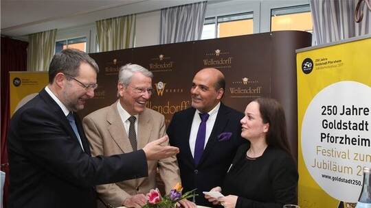 Der Pforzheimer Tenor Jay Alexander war zu Gast beim sechsten Sponsorenlunch im Rahmen des Jubiläums „Goldstadt 250“. Die Firma Wellendorff, die die Veranstaltung dieses Mal ausrichtete, ist einer von mittlerweile fast 80 Unterstützern.
