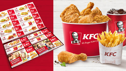 Das vielfältige Produktangebot von KFC hält für jeden Geschmack etwas bereit. Der einzigartige Bucket – der Klassiker – ist besonders beliebt zum Teilen mit Freunden und der Familie. Er ist je nach Variante gefüllt mit knusprig panierten Hähnchenteilen, saftigen Filet Bites, knusprigen Filet Streifen oder pikant gewürzten Hot Wings®. Für Fans von feinem Hähnchenfilet aus 100 Prozent natürlich gewachsenem Hähnchenfleisch gibt es gegrillte und panierte Produkte sowie die Filet Bites, außen zart paniert und innen saftig, zubereitet nach dem Original Rezept und Crispys, knusprig panierte Filetstreifen. Zudem werden schmackhafte Wraps, Burger und frische Salate angeboten. Einfach lecker schmecken auch die einzigartigen KFC Beilagen, wie Maiskolben, Kartoffelpüree oder der berühmte Krautsalat.