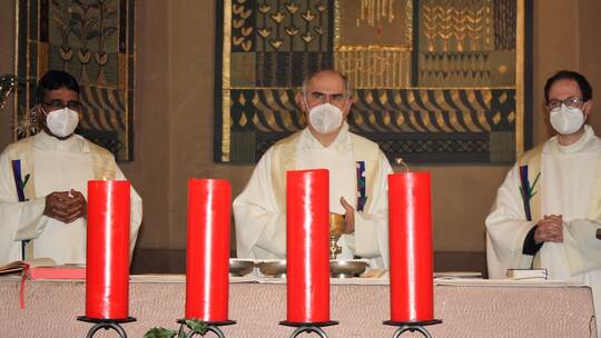 Den Gottesdienst hielten der Leiter der Seelsorgeeinheit und stellvertretende Dekan Pfarrer Georg Lichtenberger, Vikar Pater Maria Arokiados Antonraj SdC und Vikar Dominik Albert gemeinsam.