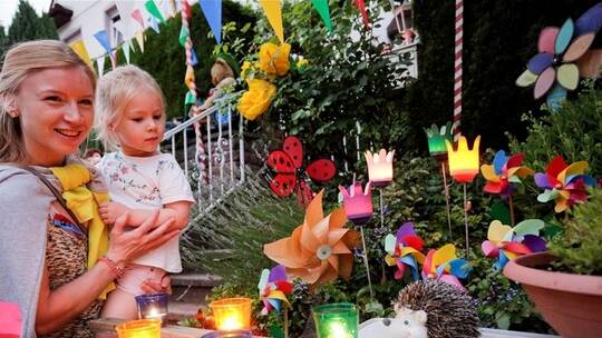 Je später der Abend, desto stimmungsvoller wurde es im Arlinger, denn überall leuchteten Kerzen, Laternen und andere arrangierte Beleuchtungen auf. Kurz vor Sonnenuntergang war für die Jüngsten mit dem Lampionumzug der große Moment gekommen. Das Lichtermeer wurde von Michael Fitterer, dem Vorsitzenden der Gartengemeinschaft, und seinem Stellvertreter Sven Rittmann angeführt, musikalisch begleitet vom Musikverein Ötisheim.