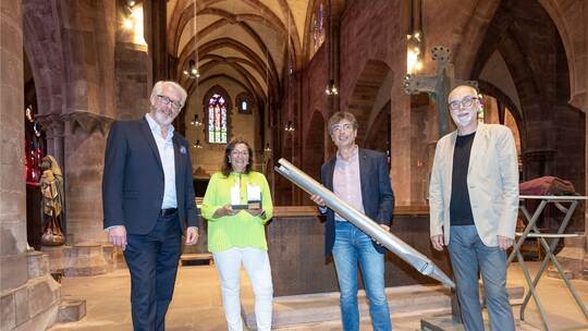 Der Dentaurum-Geschäftsführer erzählt diese Anekdote am Altar des „Steinernen Geschichtsbuchs“ der Stadt Pforzheim, der ehemaligen Grablege der badischen Markgrafen, mit Blick auf die gegenüberliegende Empore. Wenn am 14. Mai nächsten Jahres ein Echo-Preisträger in die Tasten greift und alle Register zieht, wird sie also wieder an ihrem Platz sein, die 1958/59 eingebaute Steinmeyer-Orgel mit ihren über 3000 Pfeifen.