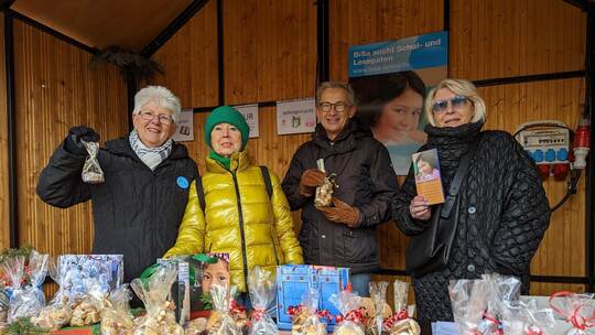 Pforzheim. Mit Selbstgebackenem und Infos zu ihrem ehrenamtlichen Angebot haben Birgit Hattich, Lilli Gros, Karlheinz Genth und Karin Steger vom Verein Bürger in Schulen aktiv (BiSa) am Dienstag den Weihnachtsmarkt bereichert.