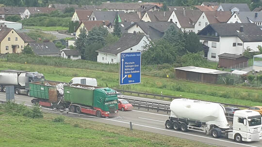 Der Unfall ereignete sich gegen 11.45 Uhr an der zweispurigen Engstelle in Fahrtrichtung Karlsruhe. Anwohner berichteten der PZ von einem sehr lauten Knall. Einer der Lkw hatte Schrottteile geladen, die sich auf der Fahrbahn verteilten. Die rechte Spur war die gesamte Mittagszeit gesperrt, die Bergungs- und Aufräumarbeiten sollten laut Polizei rund fünf Stunden dauern.