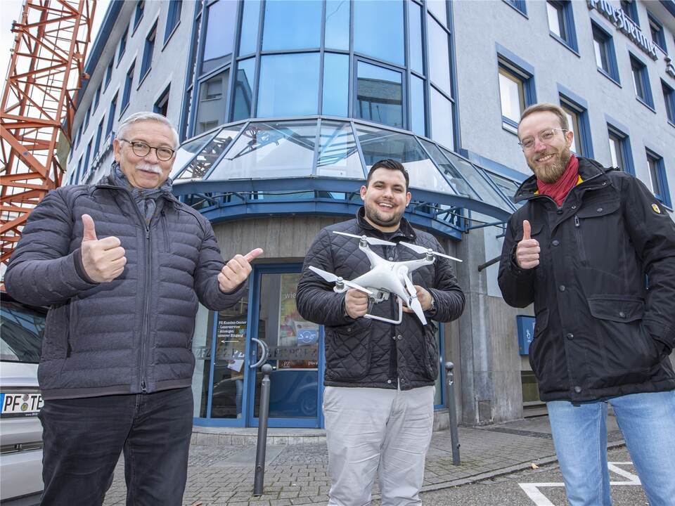 Bringen die Drohnen an den Himmel: Peter Wagner, Philipp Dörflinger und Marius Müller (von links) vom Organsationsteam des Vereins Pforzheim mitgestalten. Meyer