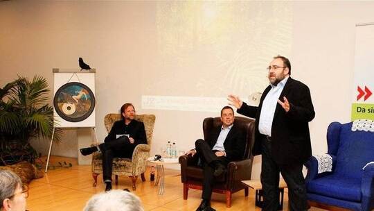 Das Theater Pforzheim hatte tief in seinen Fundus gegriffen und illustre, pelzige sowie fedrige Requisiten ausgeliehen. Geier, Krähe, dazu ein netter Kerl im Bärenkostüm, sie tummelten sich um den Biologen und renommierten Buchautor aus Karlsruhe. Damit Ludwig sich nicht allein im Bühnen-Dschungel fühlte, standen ihm SWR-4-Moderator Johannes Stier und PZ-Redakteur Thomas Kurtz als Stichwortgeber zur Seite.