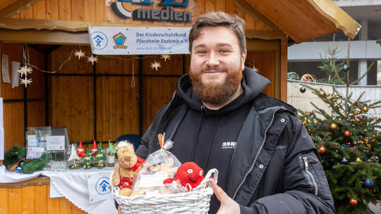 Pforzheim. Es ist eine festliche Pracht, die der Kinderschutzbund in die PZ-Aktionshütte vor dem Neuen Rathaus gezaubert hat. „Alles selbst gemacht“, versichert Florian Kaltenbach, der bei dem Verein für Veranstaltungen und die Öffentlichkeitsarbeit zuständig ist und hier vergnügt der Kälte trotzt.
