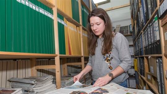 Staubtrockene Fleißarbeit, aber mit aussagekräftigem Ergebnis: PZ-Mitarbeiterin Benita Schmidt durchforstet das Zeitungsarchiv. Foto: Meyer