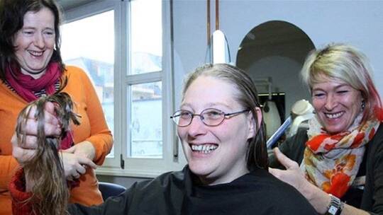 Die Aktion fand am Montag in den Räumen der Friseur-Innung statt. Dort angekommen, erzählte Lydia M. (Name von der Redaktion geändert) von ihrem Glück, das sie kaum fassen konnte: „Ich habe Freudensprünge gemacht, als ich vom Kinderschutzbund gefragt worden bin, ob ich Interesse an einem neuen Haarschnitt hätte. Als alleinerziehende Mutter von vier Kindern war ich bestimmt schon zwei, drei Jahre nicht mehr beim Friseur.“ Nun war es so weit. Der heiß ersehnte Friseurbesuch stand bevor. Natürlich habe sie sich im Vorfeld schon Gedanken über ihren neuen Haarschnitt gemacht. „Kurz soll er werden“, sagte die Frau mit den langen blonden Haaren – ganz nach dem Motto „Wennschon , dennschon.“