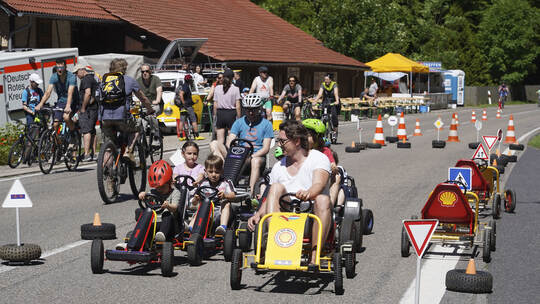 Denn egal von welcher Seite man einsteigt, es gibt auf der gesamten Strecke zahlreiche Stationen, an denen die Besucher von den teilnehmenden Vereinen und Organisationen versorgt und unterhalten werden. Ob Fahrrad-Technik-Parcours, GoKart-Parcours mit Kinderführerschein, wo auch der als Fan stark motorisierter Autos bekannte Neu-Stadtrat Andreas Sarow seine Runden dreht, Spielgeräte des Stadtjugendrings oder Ponyreiten – geboten ist so einiges. Der Verkehrsclub Deutschland (VCD) wiederum startet während des Aktionstags eine Radtour unter dem Motto „Wir suchen die Pforzheimer Radwege – mit Fernglas und Lupe“ , um auf die aus seiner Sicht schlechte Radinfrastruktur in Pforzheim hinzuweisen,