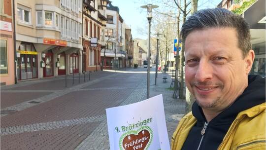 Pforzheim-Brötzingen. Hier wäre es bis Montag rundgegangen: Organisator Jörg Augenstein steht allein in der Brötzinger Fußgängerzone, wo am Donnerstag das fünftägige Frühlingsfest begonnen hätte. Die Planungen waren weit gediehen, als die coronabedingte Absage kam.