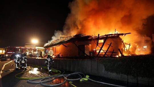Ein Großfeuer hat am Dienstag Abend das Burger King Schnellrestaurant an der Karlsruher Straße verwüstet. Trotz des schnellen Einsatzes der Feuerwehr brannte das Gebäude nieder.