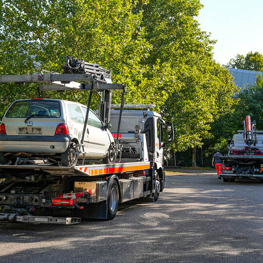 Große Abschleppaktion auf Parkplatz an ehemaligem Kohlebunker in Pforzheim