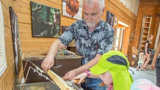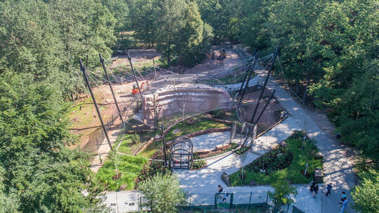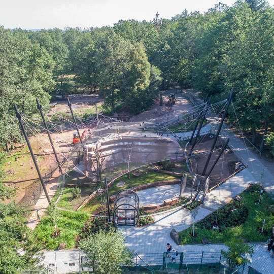 Wo einst Wildschweine in matschigen Kuhlen suhlten ist das elegante Bauwerk entstanden. Hier leben zehn Waldrappe und vier Uhus, mit der Hoffnung auf baldige Vermehrung. Jan Lauer, Vorsitzender des Fördervereins, betont bei der Eröffnung, dass artgerechte Haltung und die Nähe zwischen Mensch und Tier bereits dem Förderkreis um Ewald Steinle und schließlich dem Förderverein mit Lauers Vorgängerin Christine Stavenhagen besonders wichtig gewesen sei. Und schon jetzt plant der Förderverein Neues: „Zum einen wird das Erfolgsmodell Kinderbauernhof erweitert und aufgewertet sowie eine Wildkatzenschlucht als neues artgerechtes Zuhause für die Wildkatze gebaut wobei hiervon auch Luchs und Rentier profitieren werden.“ Und, um auf einen Leserbrief am Samstag in der PZ einzugehen: „Was Sie hinter uns sehen, nennt sich zwar Kunstfelsen, außer dem Wasserschlauch für den Wasserfall werden Sie in der gesamten Voliere aber keinerlei Plastik finden.“