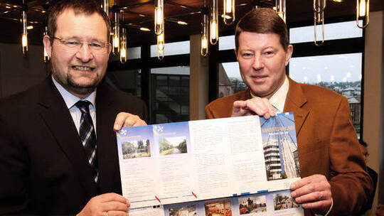 Hoffen auf eine rege Bürgerbeteiligung beim Masterplan-Projekt der Stadt Pforzheim: (von links) Oberbürgermeister Gert Hager und Erster Bürgermeister Roger Heidt.