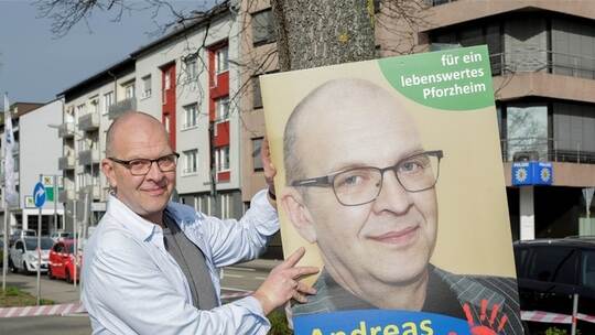 Pforzheim. Es sind die ersten von 400 Plakaten in eigener Sache, die Andreas Kubisch als OB-Kandidat am Messplatz aufhängt. Ein Mann, ein Motiv, viele Freunde, die ihm helfen, sagt er – und Mitstreiter von der Liste Eltern.