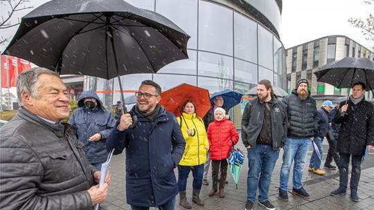 Pforzheim. Wie sich die Bilder gleichen – dem Prinzip nach. Ob in den Ortsteilen oder hier, im 14.000-Einwohner-Stadtteil Buckenberg-Haidach: Man fühlt sich etwas benachteiligt von „denen da unten“ im Rathaus, dabei sei man doch eher bescheiden mit dem, was man wolle. Das weiß jeder Oberbürgermeister und versucht, den Murrenden den Wind aus den Segeln zu nehmen. So auch Peter Boch. Es ist sein zweiter Outdoor-Einsatz bei Temperaturen um den Gefrierpunkt an diesem Nachmittag. Leichter Schneefall, zwei Dutzend Bewohner des Stadtteils an der Nahtstelle zwischen dem alten Haidach, dem Wohnquartier Tiergarten samt Gewerbeinfrastruktur – von Kreditinstituten über Apotheke bis hin zu Supermarkt und Discounter – und dem geplanten „MehrTiergarten“.