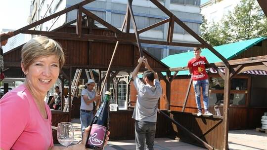 Pforzheim. Weinflasche und -glas nimmt Waltraud Knöller nur kurz fürs PZ-Foto in die Hände. Sonst sind für die Mitarbeiterin des städtischen Eigenbetriebs Wirtschaft und Stadtmarketing Pforzheim (WSP ) derzeit Messrad, Zollstock, Verkehrshütchen und ein Kreidestift stete Begleiter. Knöller koordiniert auf dem Marktplatz den Aufbau fürs OechsleFest. Und da ist tatsächlich Maßarbeit gefragt.