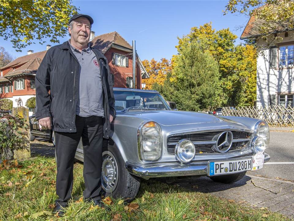 „Spaß an der Freude, Zusammenhalt und Gemeinschaft“, das fasziniert Schalude an den großen Ausfahrten, die coronabedingt unter 3G-Bedingungen stattfinden. Als Oldtimer-Freak, wie sich der 74-Jährige selbst bezeichnet, war er am Sonntag mit einem Mercedes Benz 230 SL 23 aus dem Jahr 1965 unterwegs.