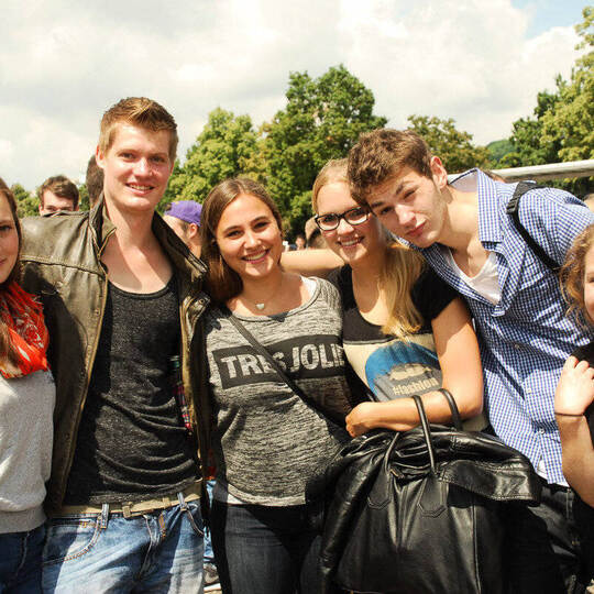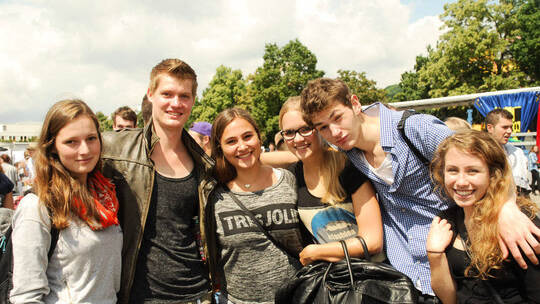 Hunderte Schüler feiern ausgelassen auf dem Pforzheimer Messplatz.