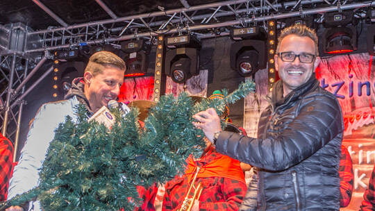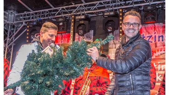 Pforzheim. Es ist ein kleines Tännchen aus Kunststoff, das an diesem Donnerstagabend die Blicke aller auf sich zieht und für kollektive Heiterkeit sorgt. Organisator Jörg Augenstein hat es mitten auf der Bühne platziert – als Zeichen dafür, dass die Panne mit der großen, echten Tanne längst behoben ist und einem vergnüglichen Martini Markt nun im Wortsinn nichts mehr im Wege steht.