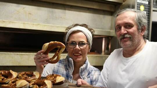 Pforzheim. Auch das noch – ein Wasserschaden im Haus, und in einem der drei Backöfen hat es eine Verpuffung gegeben. Der Laden rappelvoll – „Ein Fleischkäs’weck!“, „Für mich ein Baguette!“ –, der Cafébereich gut besucht. Und Werner Aichinger (67) ist hundemüde. Wie jeden Morgen ist er um halb zwei aufgestanden und hat sein Tagwerk begonnen. Wie seit 1964, als er „beim Aisenbrey“ lernte, 1954 gegründet, von Aichinger und seiner Frau Isa (56) im Jahr 1989 übernommen, ist die Bäckerei eine Institution, schon allein der Brezeln wegen – für viele die besten der Stadt. Generationen von Sekretärinnen oder Event-Abteilungen größerer Firmen kennen den Satz ihrer Chefs: „Und die Brezeln wie immer vom Aisenbrey!“