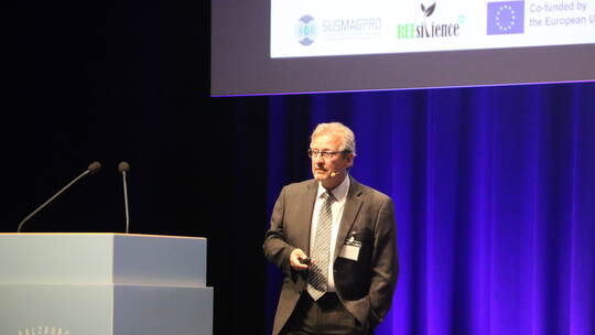 Publikumswirksam eingebettet in eine Session, an der unter anderem Österreichs Ex-Bundeskanzler Wolfgang Schüssel sowie der ehemalige Bundesminister Karl-Theodor zu Guttenberg teilnahmen, gab er einen umfassenden Überblick über die Versorgungsrisiken von Permanentmagneten und zeigte die dadurch verursachte starke Abhängigkeit der europäischen Schlüsselindustrien Mobilität, grüne Energie, Automatisierung und Digitalisierung von der aufstrebenden Weltmacht China auf. Er stimmte mit dem Vize-Rektor der Montanuniverstität Leoben, Peter MoserProfessor, darin überein, dass es großer Anstrengungen sowohl in der Primärversorgung mit Rohstoffen durch die Eröffnung neuer Abbaustätten als auch im Recycling durch verbesserte Rücknahmesysteme und Kennzeichnungspflichten bedarf, um die Versorgungssicherheit in Europa mittelfristig zu verbessern.