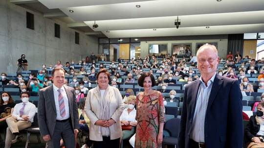 Professorin Christa Wehner begrüßte die Zuschauer im Livestream und im sehr gut gefüllten