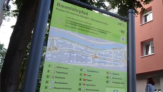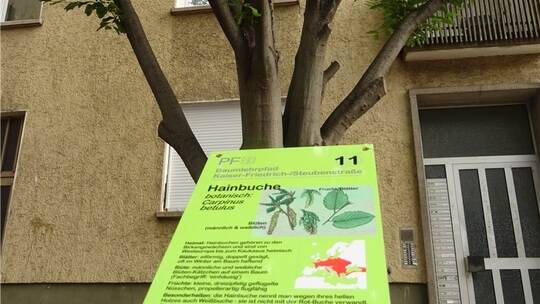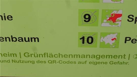 Die quadratischen „Quick Response“-Codes, abgekürzt QR-Codes, die schwarz auf weiß gedruckt sind, findet man seit langem an Gebäuden, in Magazinen und Tageszeitungen. Smartphones und Computer mit Code-Leser können aus den schwarzen und weißen Punkten und Strichen in wenigen Augenblicken ausführliche Informationen erhalten. So kann beispielsweise auch in Museen und Kirchen bei Rundgängen viel Wissenswertes vermittelt werden. Das war auch die Idee beim Baumlehrpfad. Doch was ist auf den Info-Tafeln ganz unten und in kleinerer Schrift vermerkt? „Begehung des Baumlehrpfads und Benutzung des QR-Codes auf eigene Gefahr“.