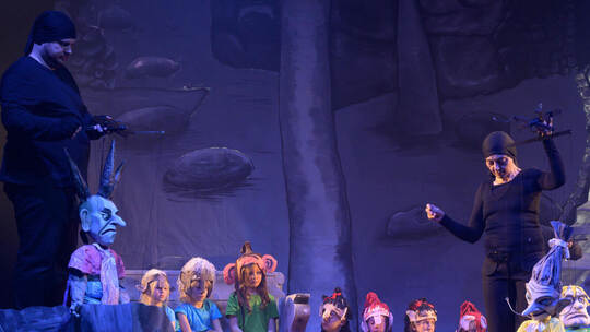Pforzheim: Gut möglich, dass sich die Jüngsten im Premierenpublikum ganz besonders von Technik und Raumerlebnis dieses Theaterstücks beeindruckt zeigen: Etwa von König „Kalle Wirsch“, dessen Auftritt hoch oben, in der engeren der beiden Logen des großen Osterfeld-Saals, beginnt. Oder von der zunächst im Bauch des Orchestergrabens verborgenen Töpferwerkstatt, die plötzlich leise an die Oberfläche gehoben wird. Oder von den kreuz und quer über die Bühne rollenden Echokugeln, die Gesprochenes nicht immer buchstabengetreu, aber meist lustig verfremdet wiederholen.