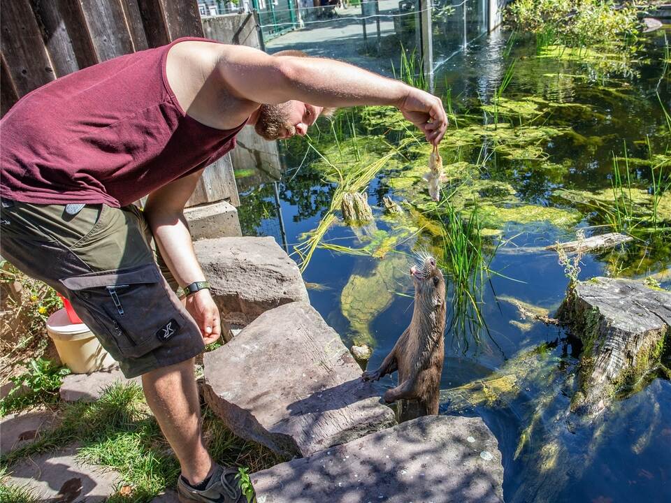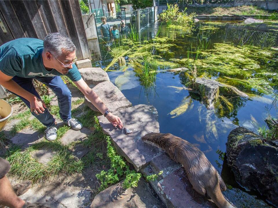 Schmitt ist beeindruckt, wie rasch sich die Tiere ans neue Domizil gewöhnten: „Sie lernen unglaublich schnell, sind neugierig und wissbegierig, die haben einfach was in der Birne“. Insbesondere das Weibchen habe anfängliche Skepsis flugs abgelegt. „Sie respektieren und dulden uns jetzt in ihrem Gehege“, sagt Schmitt und betont: „Wir Tierpfleger sind hier ja nur Gäste.“ Anders, als erwartet, sei das Duo schon regelmäßig tagaktiv und habe tatsächlich einen „Bärenhunger“. Eineinhalb Kilo Futter verputzt jeder Otter pro Tag, den Vorgängern hatte zuletzt etwa ein Drittel dieser Ration ausgereicht. Der Appetit hat übrigens eine jahrelange Arbeit ratzfatz zunichtegemacht.