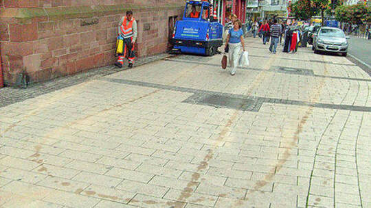 PFORZHEIM. Normalerweise werden die Reinigungsfahrzeuge der Technischen Dienste der Stadt Pforzheim dazu eingesetzt, um Straßen und Gehwege vom Schmutz zu befreien. Doch am Dienstag hat ein Fahrer für die bisher wohl längste Ölspur in Pforzheim gesorgt. Die Ölflecken auf dem Marktplatz allerdings haben andere Ursachen.