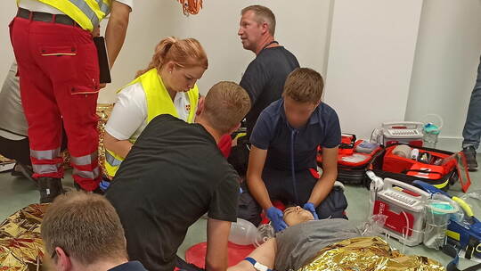 Marco Morasch (47) arbeitet in der IT im Gesundheitsweisen und mit Leidenschaft seit 25 Jahren als Notfallsanitäter – doch das komplexe Übungsszenario zu einem Amoklauf im neuen Verwaltungsgebäude des Siloah Krankenhauses bringt sogar ihn und sein Team an die Grenzen. Gute Kommunikation und der richtige Umgang mit Ressourcen retten Leben. Das wissen die Helfer. Doch es läuft an diesem Mittwoch nicht alles so wie gewünscht. Ein Amokläufer in Gestalt des polizeilichen Einsatztrainers Thomas Ganter hat in dem Gebäude um sich geschossen und Menschen verletzt. Was die Sanitäter nicht wissen: Die geschminkten Opfer sind aufgrund der Schwere ihrer Verletzungen in drei Kategorien eingeteilt, nach denen sie eingeordnet und mit Blick auf die Reihenfolge der Erstversorgung priorisiert werden müssen.