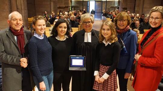 Reisner-Baral erinnert an Reuchlins Aufruf, nichts zu verachten, nur weil es fremd ist. Die Pfarrerin erzählt die Geschichte von einem alten, im Seniorenheim lebenden Mann und einem als Pfleger arbeitenden Migranten. Zwei Menschen, die ein Wunsch verbindet: dass es nie wieder Krieg gibt. In ihren Fürbitten ruft die Pfarrerin Gott an: Hass und Bitterkeit sollen keine Chance mehr haben, Menschen nicht wegen ihrer Andersartigkeit ausgeschlossen werden. Gott möge den Menschen helfen, die sich für andere einsetzen. Und er möge ihnen die Kraft geben, nicht zu resignieren. Claudia Baumbusch sagt, Reuchlin sei ein „Anwalt von Toleranz und Menschenrechten“ gewesen. Etwa, indem er sich trotz drohender Gefahren für die Erhaltung der jüdischen Schriften eingesetzt hat.