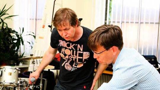PZ-news filmt die gemeinsame Probe von "Fools Garden" mit Sänger Peter Freudenthaler (links) und dem Südwestdeutschen Kammerorchester mit Dirigent Sebastian Tewinkel.