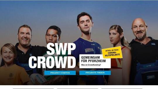 Mit der SWP-Crowd bieten die Stadtwerke Pforzheim regionalen Vereinen und Initiativen eine digitale Plattform, sich in der Öffentlichkeit zu zeigen und anstehende Projekte und Vorhaben zu verwirklichen. Interessierte und Spendenbereite können einen frei gewählten Betrag beisteuern. Was die SWP beiträgt: Ob Bolzplatz, Theater oder Sportverein – die Stadtwerke legen auf jeden gespendeten Betrag ab 10 Euro selbst noch einmal 10 Euro aus dem monatlichen Fördertopf drauf.