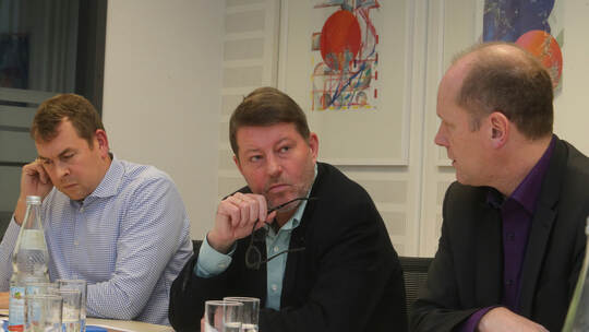 Nachdenkliche Mienen: SWP-Prokurist und Hauptabteilungsleiter Markt Peter Oswald, SWP-Geschäftsführer Roger Heidt und SWP-Aufsichtsratschef Dirk Büscher (von links). Foto: Ketterl